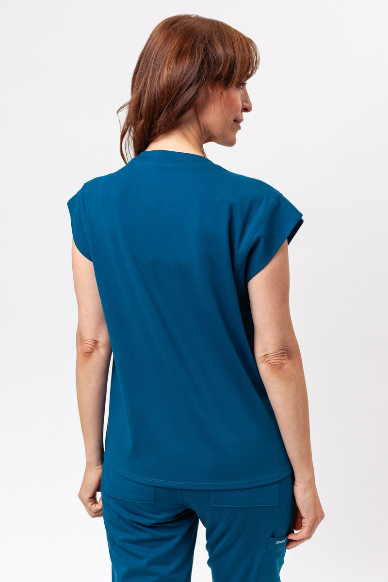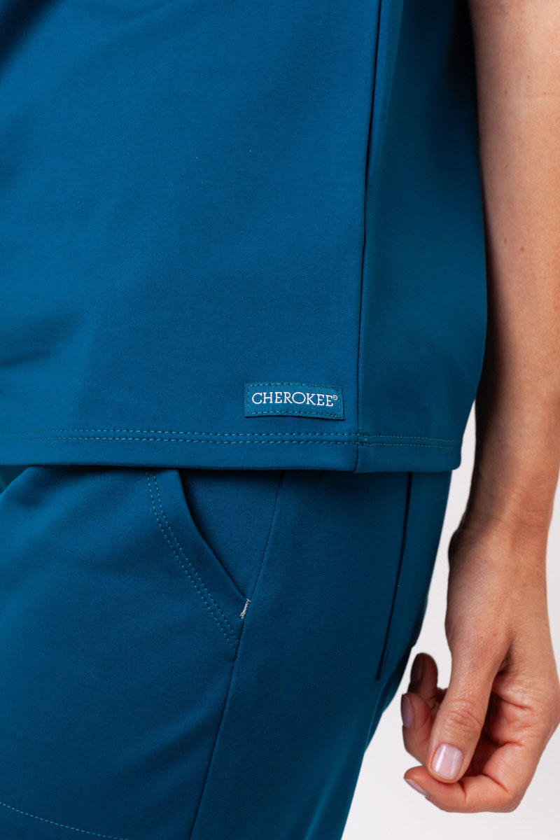Lékařská halena Cherokee Achieve vyniká moderním střihem, který narušuje stereotypy tradičních uniform. Raglánové rukávy zajišťují plnou volnost pohybu a dodávají celku dynamický charakter. Kulatý výstřih u krku jemně podtrhuje minimalistický styl a odlišuje tento model od běžných halen s hlubšími výstřihy. O něco kratší střih dělá halenu lehkou a mimořádně moderní. Díky svému designu se tato halena skvěle hodí nejen do práce, ale i jako stylový prvek každodenního šatníku. Proč nespojit profesionalitu s módním, každodenním lookem? :)