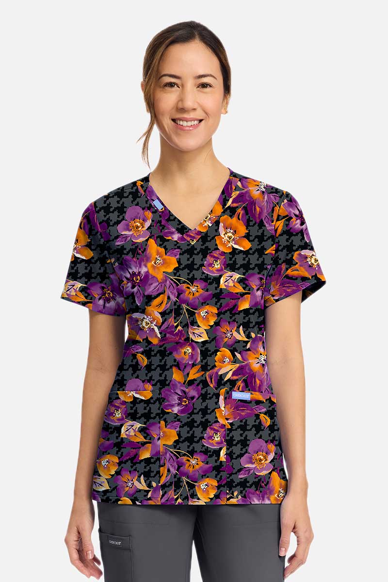 Dámská lékařská halena Cherokee Prints V-neck Velvet Floral