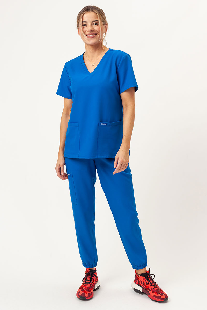 Dlouhodobé pohodlí - je to to, na co myslíte především při výběru oblečení do práce? Tato halena z kolekce Cherokee Originals Ultra vám zajistí nejen pohodlí na celý den, ale také profesionální a módní vzhled. Potěší vás její klasický střih s krátkými rukávy a úzkým střihem s výstřihem do V, který se na spodním okraji rozšiřuje, aby vám poskytl maximální volnost. Tkanina topu je prodyšná, rychleschnoucí, odolná proti vyblednutí a pomačkání, snadno se udržuje a je velmi příjemná k pokožce. Použitá technologie PROTX2® chrání před nepříjemnými pachy. Oceníte také dvě prostorné kapsy a poutko na průkaz totožnosti na límci. Vyberte si tuto halenu a užívejte si báječného pohodlí každý den!
