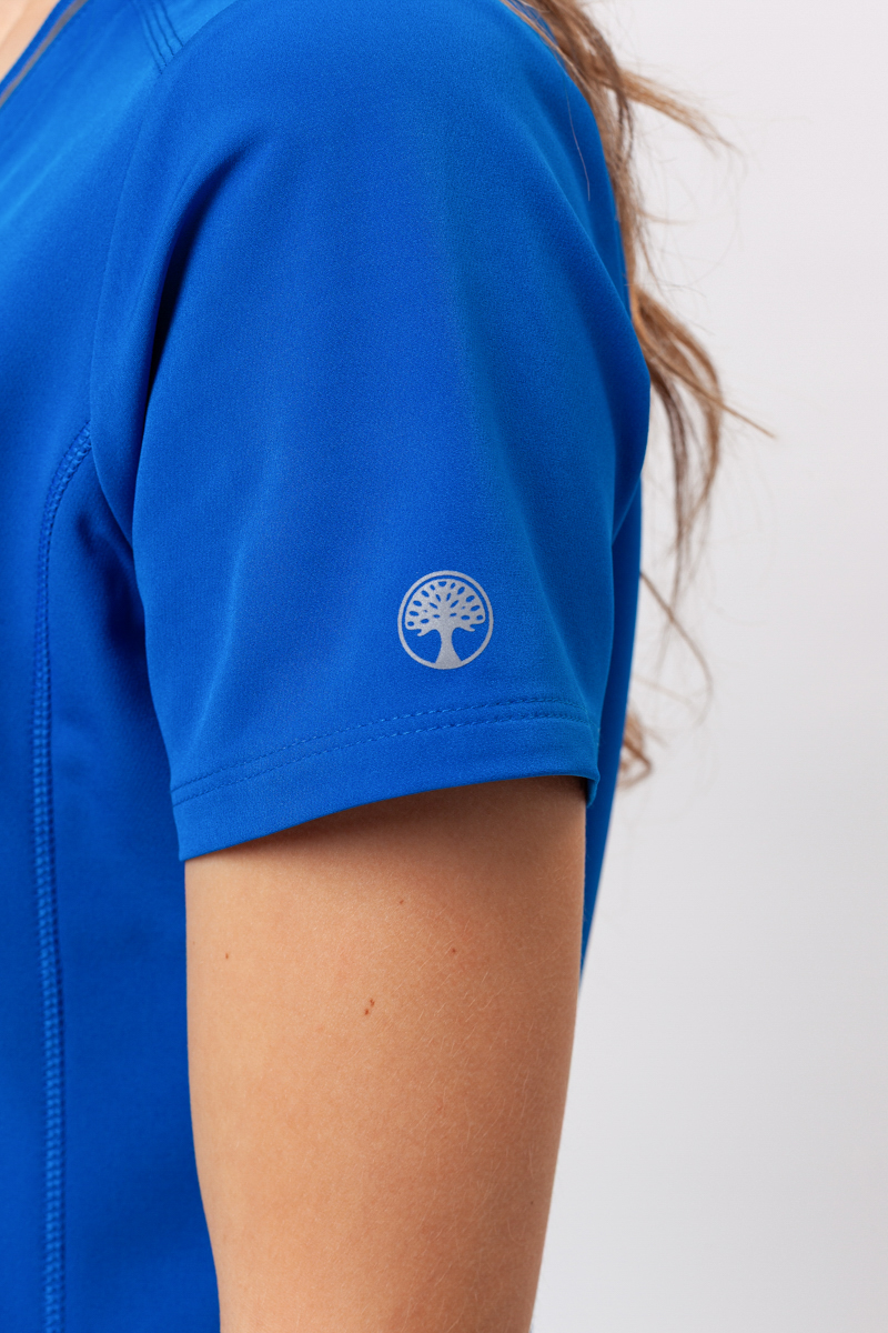 Halena Sonia zaujme už od výstřihu – asymetrický střih s jemným zipem dodává blůze osobitý charakter a moderní styl. Vypasovaný střih a tvarující švy jemně zvýrazňují postavu, zatímco boční rozparky dodávají lehkost. Měkká, čtyřsměrně elastická tkanina odvádí vlhkost, je odolná proti vyblednutí a zajišťuje plnou volnost pohybu. Tři praktické kapsy, z toho jedna s přihrádkou na propisku, spojují funkčnost s promyšleným designem. Jemné reflexní lemování a decentní logo na zipu dotvářejí celkový vzhled a dodávají blůze styl, který vynikne v každém pracovním prostředí.