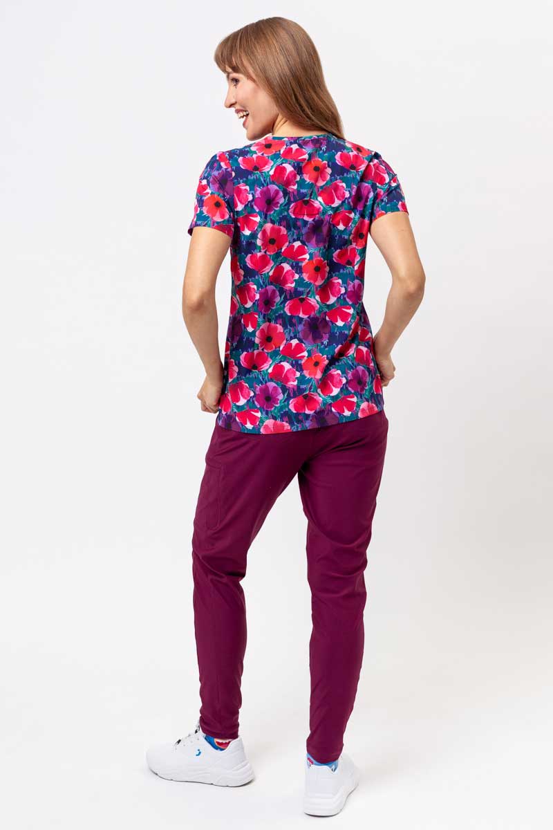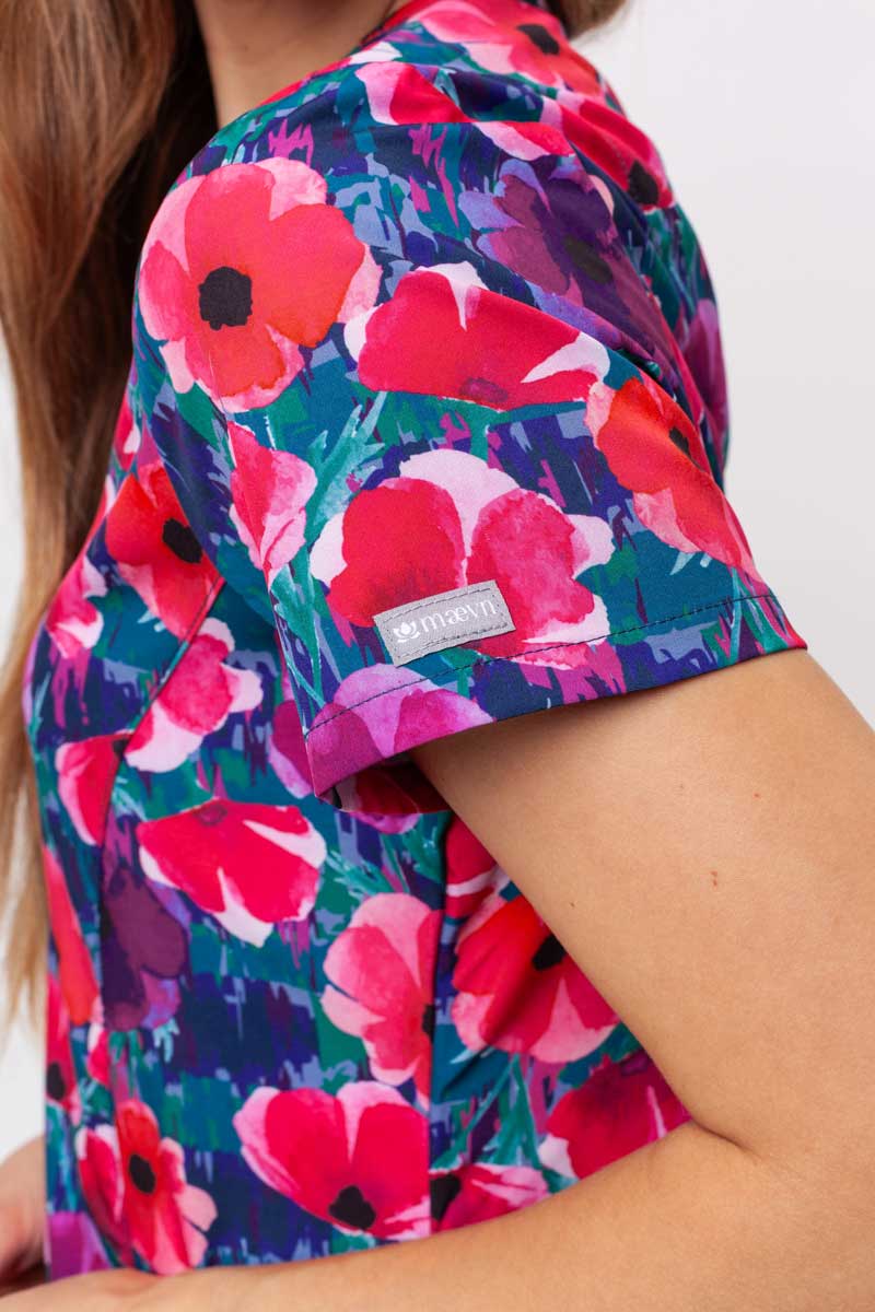 Vyzkoušej něco nového s halenkou, která spojuje výrazný potisk s propracovaným střihem. Lehce zaoblený výstřih ve tvaru písmene V dodává lehkost a tvarující švy vpředu jemně zvýrazňují siluetu. Prodyšný materiál s přídavkem spandexu zaručuje plnou volnost pohybu a pohodlí po celý den. Ventilační systém se stará o svěžest, zatímco zesílené kapsy a dvojité švy poskytují spolehlivou odolnost. Tři praktické kapsy umožňují mít vše potřebné vždy po ruce. Je to spojení funkčnosti a moderního stylu, které promění každodenní uniformu v něco výjimečného.