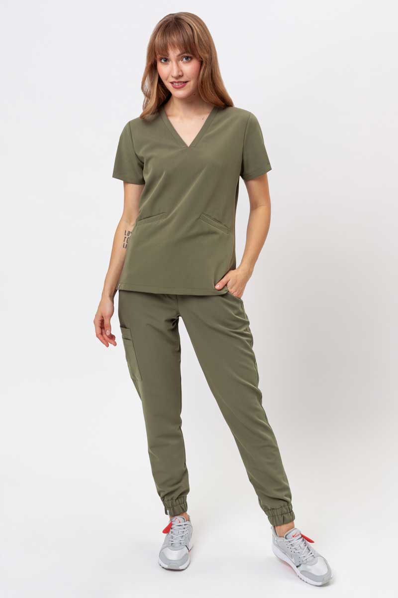 Prohlédla jste různé možnosti, ale od této blůzy se nemůžete odtrhnout? Tak funguje model Premium Aura, který splňuje nejvyšší kritéria komfortu a elegance v moderním provedení. Nezvyklý střih s efektně zpracovaným výstřihem do V, bočními záševky a záševky na zádech zajišťuje dokonalé přizpůsobení vašim křivkám a volnost pohybu. Dvě šikmé kapsy, krátký rukáv a bohatá paleta barev jsou dalšími přednostmi, které zvyšují atraktivitu tohoto modelu. Příjemná, hustá tkanina s přídavkem spandexu a funkční charakter blůzy zajistí, že po ní budete sahat s radostí a nosit ji co nejčastěji.