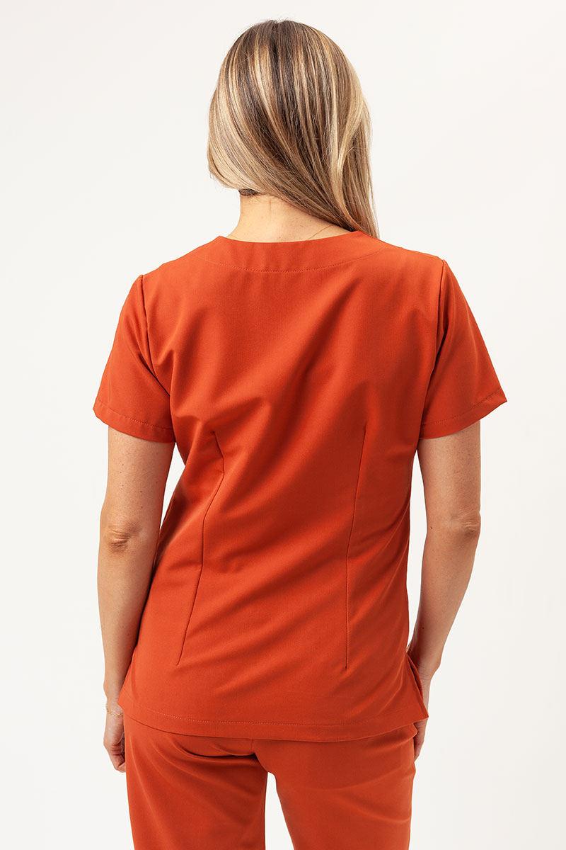 Prohlédla jste různé možnosti, ale od této blůzy se nemůžete odtrhnout? Tak funguje model Premium Aura, který splňuje nejvyšší kritéria komfortu a elegance v moderním provedení. Nezvyklý střih s efektně zpracovaným výstřihem do V, bočními záševky a záševky na zádech zajišťuje dokonalé přizpůsobení vašim křivkám a volnost pohybu. Dvě šikmé kapsy, krátký rukáv a bohatá paleta barev jsou dalšími přednostmi, které zvyšují atraktivitu tohoto modelu. Příjemná, hustá tkanina s přídavkem spandexu a funkční charakter blůzy zajistí, že po ní budete sahat s radostí a nosit ji co nejčastěji.