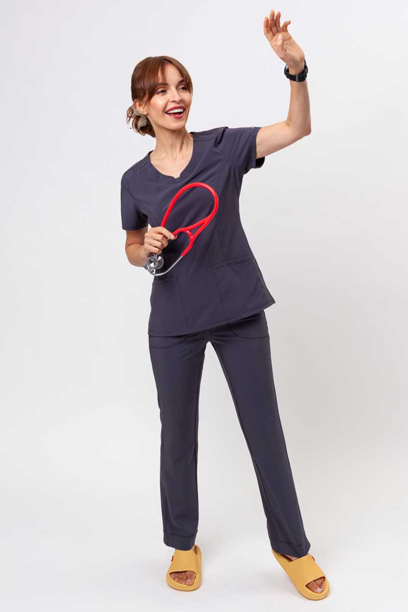 Pohodlné. Módní. Funkční. Dokonale přizpůsobené. Ženský. Je těžké popsat zdravotní soupravu Cherokee Infinity jedním slovem. Ale kdybychom museli, použili bychom slovo "nenahraditelný". Osvědčí se v každé situaci. Díky použití elastického materiálu kalhoty a halenka dokonale sedí, zdůrazňují siluetu, ale neomezují v pohybu. Kapsy jsou nezbytnou výbavou všech zdravotníků - zde o ně nebudete mít nouzi. Další zajímavostí je speciálně navržené poutko na průkaz totožnosti v blůze. Módní prošívání, žebrování, jemné rozparky, větrací vložky - všechny prvky soupravy se vzájemně doplňují a vykouzlí dokonalý outfit pro každý den v práci.