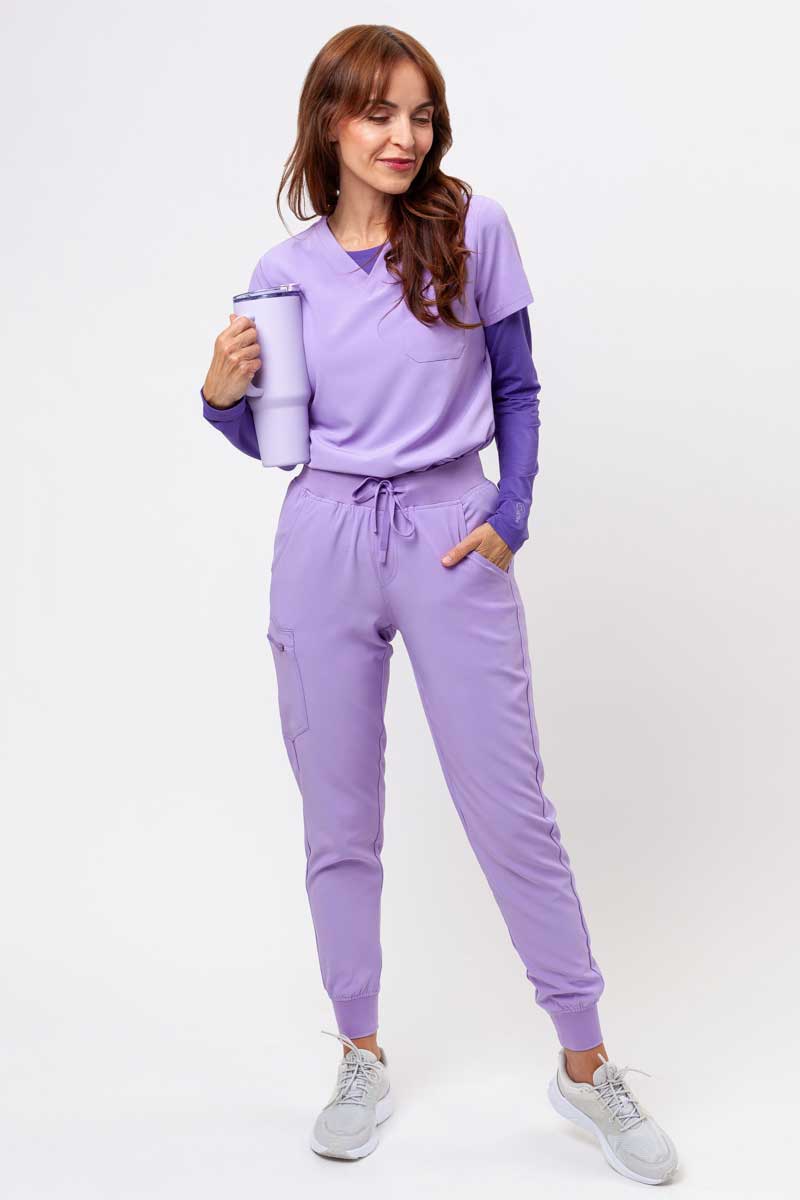 Dobře padnoucí halena a kalhoty s trendy střihem tvoří dokonalý pár. Takový, který vám umožní volně a pohodlně pracovat celé hodiny a cítit se bezchybně. Pokud právě tohle hledáte, souprava Valiant vás zaujme. Jedná se o kombinaci joggerových kalhot a halenky s výstřihem do V, ženským pasem a jemně rozšířenou spodní částí. Souprava je vyrobena z recyklované tkaniny, která je měkká, saténová na dotek, nemačkavá, neabsorbuje vlhkost a rychle schne. Díky přídavku spandexu se dokonale přizpůsobí vašemu tělu a vašim pohybům a zajistí vám naprosté pohodlí v každé situaci. Souprava Valiant je k dispozici v několika zářivých barvách.