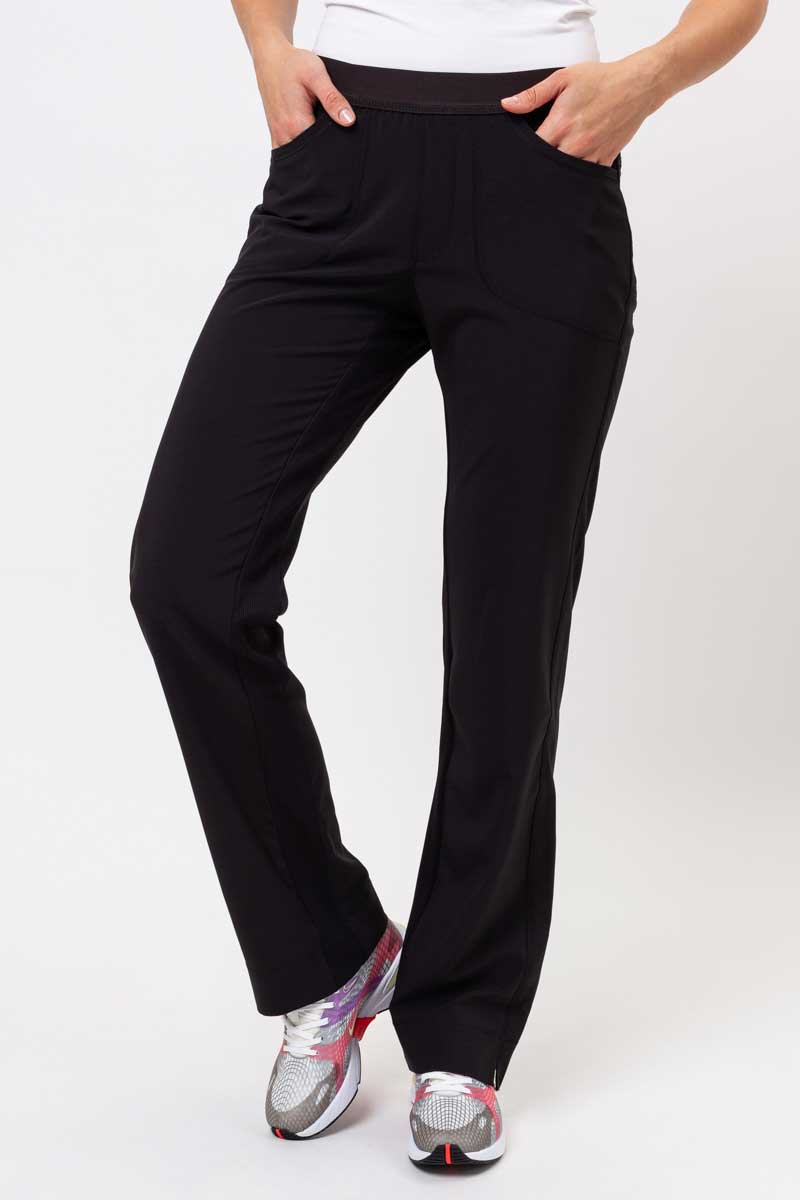Perfektně padnoucí, elastické, s módně rozšířenými nohavicemi - to jsou lékařské kalhoty Cherokee Infinity v celé své kráse. Materiál je odolný, přizpůsobí se tělu a snadno se udržuje ve skvělé kondici. Prošívání napodobuje džínový vzor, ale v pase najdete široký elastický pás pro pohodlí a přizpůsobení. Jemně naškrábané kapsy jsou prostorné - ideální na telefon, malý zápisník a psací potřeby. Díky manžetám a rozparkům ve spodní části kalhoty dokonale padnou a nebudou se vám nevzhledně srocovat na botách. Perfektní! ;)