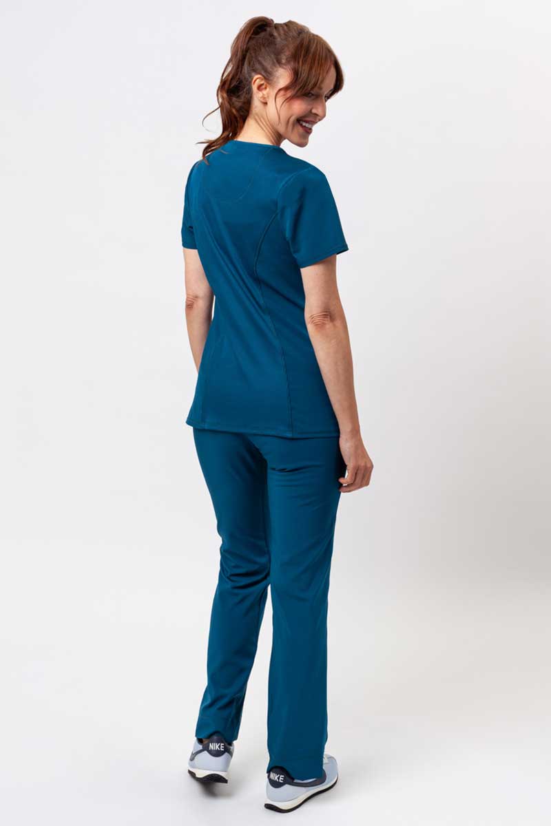 Perfektně padnoucí, elastické, s módně rozšířenými nohavicemi - to jsou lékařské kalhoty Cherokee Infinity v celé své kráse. Materiál je odolný, přizpůsobí se tělu a snadno se udržuje ve skvělé kondici. Prošívání napodobuje džínový vzor, ale v pase najdete široký elastický pás pro pohodlí a přizpůsobení. Jemně naškrábané kapsy jsou prostorné - ideální na telefon, malý zápisník a psací potřeby. Díky manžetám a rozparkům ve spodní části kalhoty dokonale padnou a nebudou se vám nevzhledně srocovat na botách. Perfektní! ;)