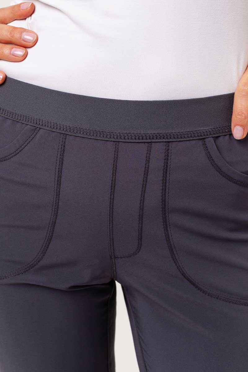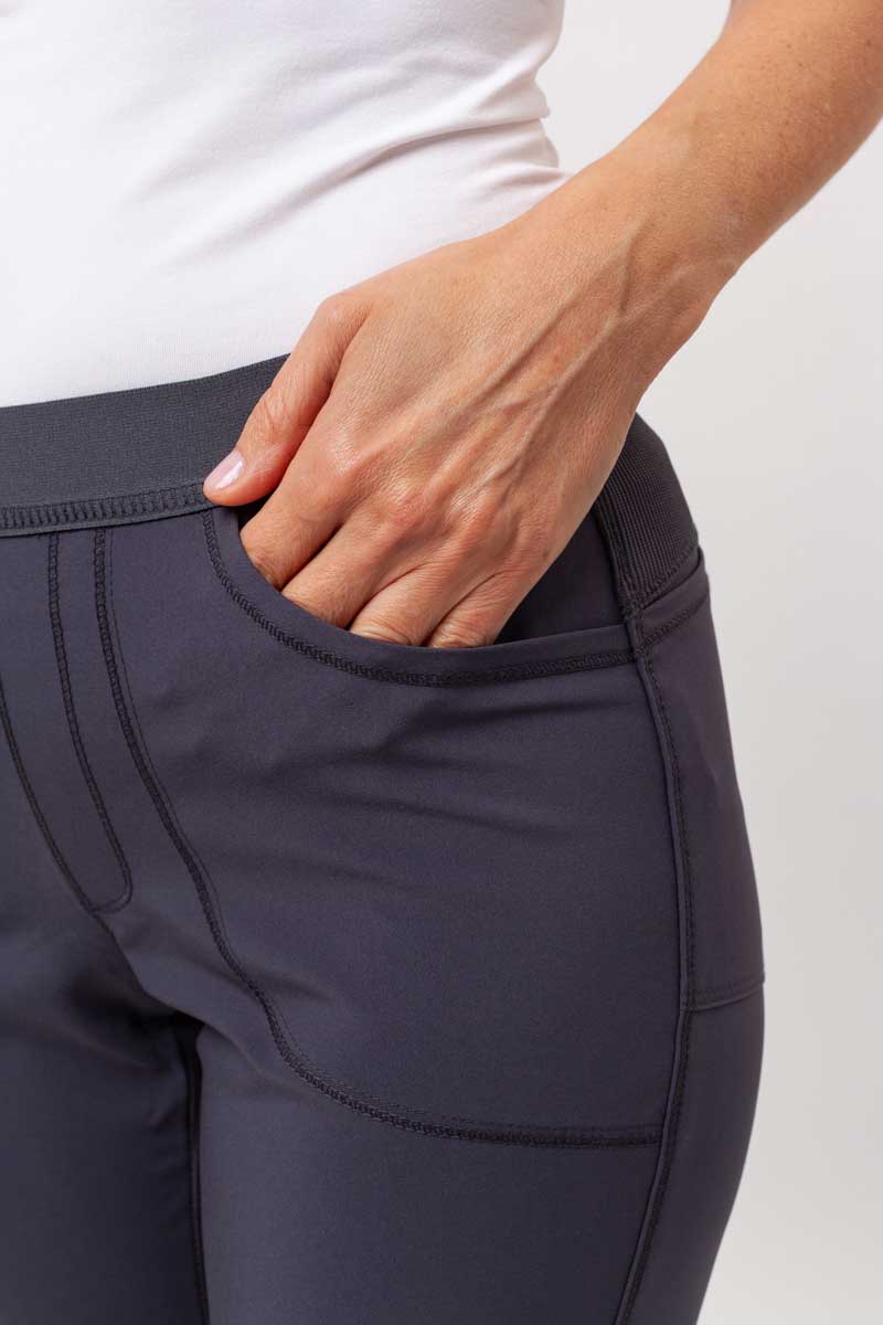 Perfektně padnoucí, elastické, s módně rozšířenými nohavicemi - to jsou lékařské kalhoty Cherokee Infinity v celé své kráse. Materiál je odolný, přizpůsobí se tělu a snadno se udržuje ve skvělé kondici. Prošívání napodobuje džínový vzor, ale v pase najdete široký elastický pás pro pohodlí a přizpůsobení. Jemně naškrábané kapsy jsou prostorné - ideální na telefon, malý zápisník a psací potřeby. Díky manžetám a rozparkům ve spodní části kalhoty dokonale padnou a nebudou se vám nevzhledně srocovat na botách. Perfektní! ;)
