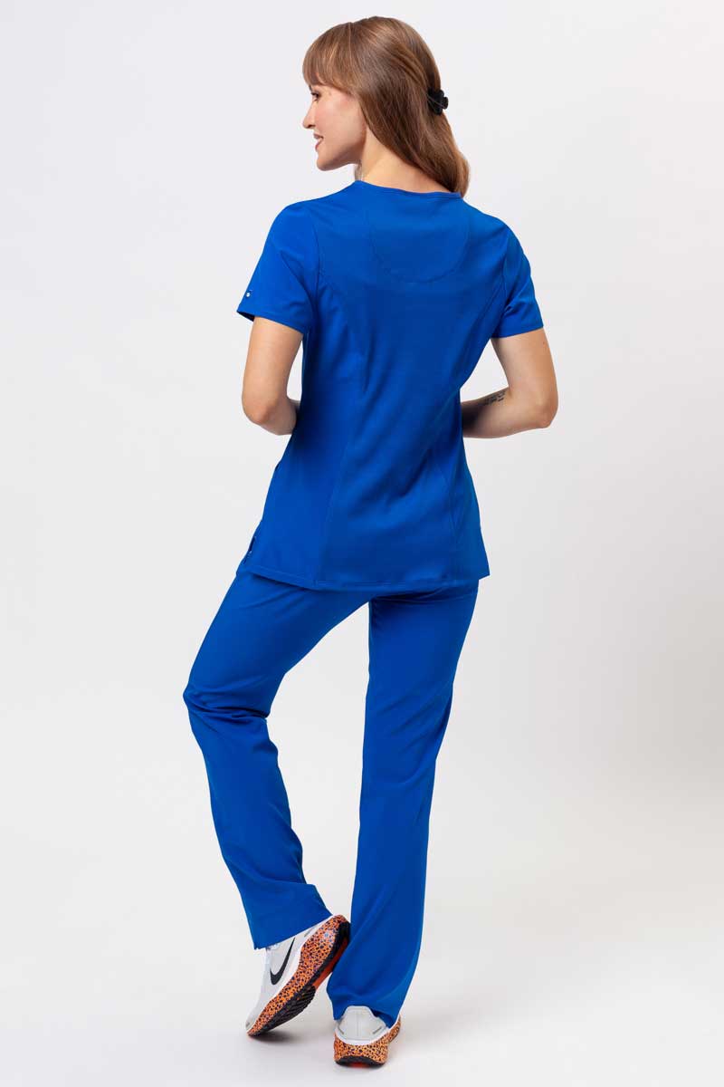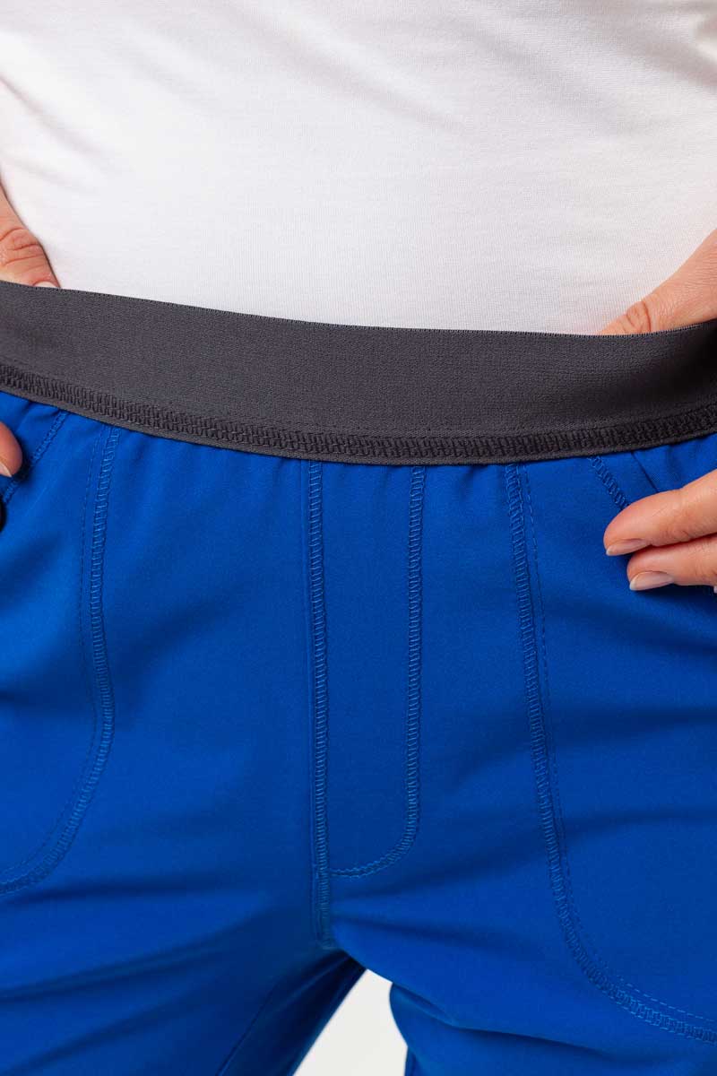 Perfektně padnoucí, elastické, s módně rozšířenými nohavicemi - to jsou lékařské kalhoty Cherokee Infinity v celé své kráse. Materiál je odolný, přizpůsobí se tělu a snadno se udržuje ve skvělé kondici. Prošívání napodobuje džínový vzor, ale v pase najdete široký elastický pás pro pohodlí a přizpůsobení. Jemně naškrábané kapsy jsou prostorné - ideální na telefon, malý zápisník a psací potřeby. Díky manžetám a rozparkům ve spodní části kalhoty dokonale padnou a nebudou se vám nevzhledně srocovat na botách. Perfektní! ;)