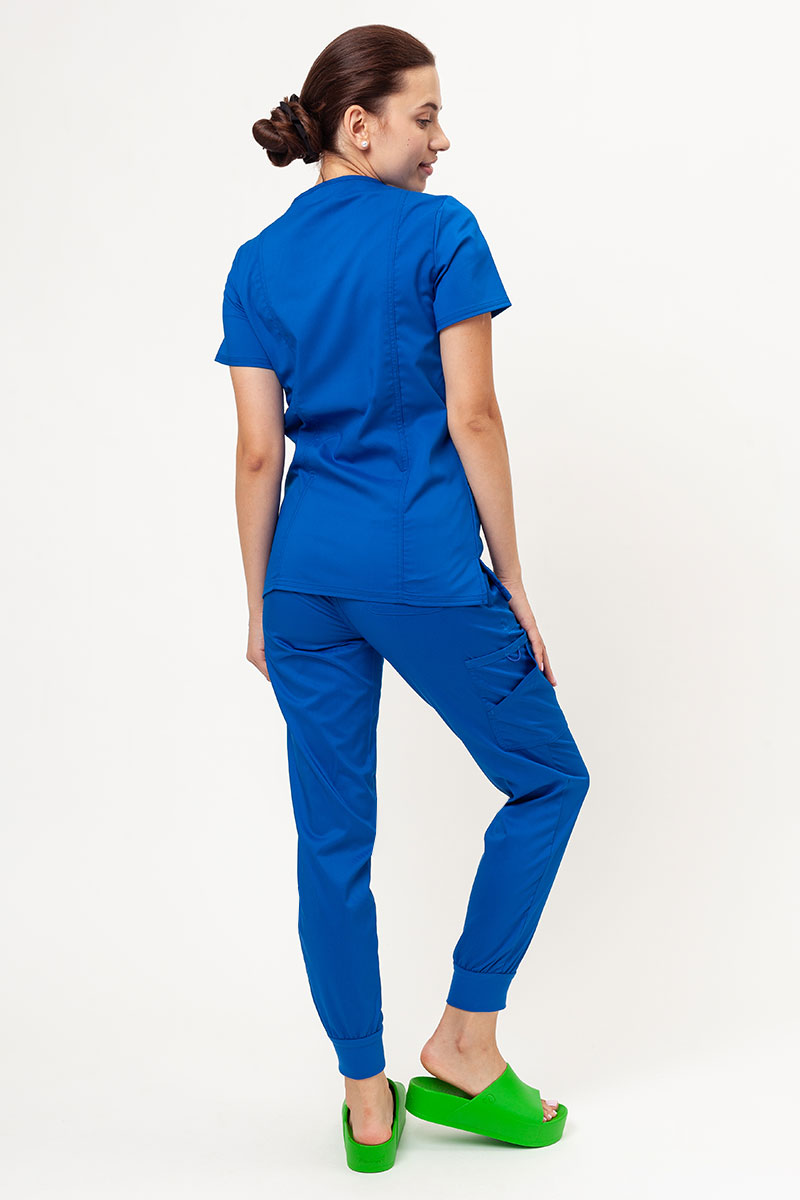 Tyto jednoduché joggery dostupné v několika jedinečných barvách způsobí revoluci ve vašem pracovním šatníku! Díky zúženým nohavicím zakončeným pohodlnými manžetami kalhoty skvěle sedí. Široká zesílená guma v pase a mimořádně měkký, elastický a prodyšný materiál zajišťují pohodlí po celé hodiny. K tomu mají kalhoty až 5 kapes, včetně dvojité cargo kapsy – nezbytné pracovní pomůcky můžete mít vždy po ruce. Jste připravena změnit svůj zdravotnický outfit?