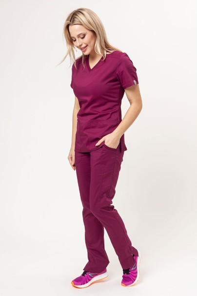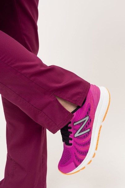 Hledáte kalhoty se střední výškou? Tento model je ideální pro náročné pracovní dny. Rovný střih a rozparky na nohavicích umožňují neomezený pohyb. Díky stahovací šňůrce v pase si můžete kalhoty přizpůsobit tvaru a potřebám své postavy. Materiál z elastanové směsi je pružný, kalhoty perfektně padnou, když jste v běhu a nejen to. A jak vypadají? Také na 5 - jednoduché, elegantní, v tlumených klasických barvách, rozbité módním prošíváním po celé délce.