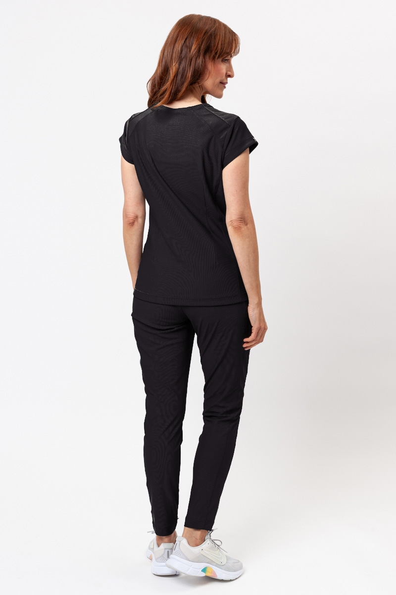 Připravená na kalhoty, které tě budou doprovázet od ranního běhu přes každodenní výzvy až po večerní odpočinek? Mia nabízí sportovní lehkost a moderní střih, který nejen zvýrazní postavu, ale především poskytuje volnost pohybu v každém kroku. Zúžená nohavice podtrhuje siluetu, zatímco elastický pas se šňůrkou a gumovými konci zajišťuje perfektní přizpůsobení bez kompromisů. Šest kapes — včetně praktické boční z síťoviny a zapínané vsazené kapsy — umožňuje mít vše po ruce, aniž by kalhoty nepříjemně vyplňovaly. Tkanina se natahuje do čtyř směrů, odvádí vlhkost a nemačká se, takže se snadno přizpůsobí tvému intenzivnímu životnímu stylu. Připravená pocítit rozdíl?