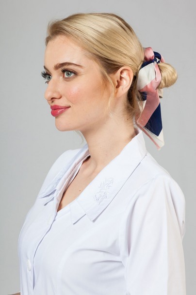 „Ach, ten límec!“ - potěší vás na první pohled. V šatech od Adar Uniforms se budete cítit podmanivě díky výšivce na krásně střiženém, dvojitém límci, francouzským manžetám na dlouhém rukávu a trojúhelníkovým záložkám s knoflíky. Zepředu nebo zezadu vypadá model skvěle a prostorné kapsy, princeznovské švy použité v šatech a snadno čistitelná tkanina budou dalšími výhodami. Toto je návrh pro ženy, které ocení jemné kouzlo zvýrazněné detaily. Zvláště v práci.