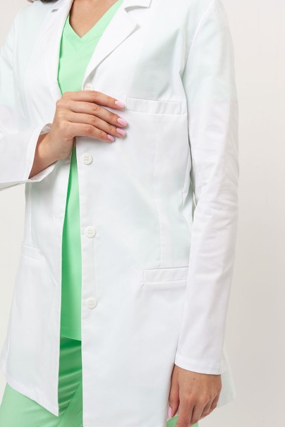 Krátký bílý plášť je vhodný pro všechny ženy, které chtějí mít klasický a atraktivní vzhled do práce. Přiléhavý střih se zapínáním na velké knoflíky a námořnický límeček vám dodá styl profesionála. Tento model je navíc mimořádně pohodlný. Je to díky použití pružné tkaniny, která se přizpůsobí vašemu tělu, aniž by omezovala vaše pohyby. Tkanina je také odolná a nemačkavá, takže se plášť snadno udržuje a zajistí vám profesionální vzhled po celý den.