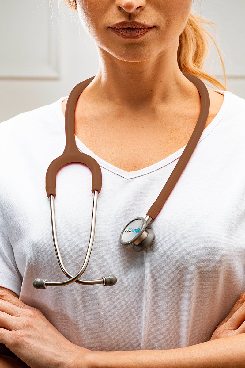 Kardiologický stetoskop, oboustranný, hlavice z nejkvalitnější nerezové oceli. Vynikající akustika v klasickém provedení, možnost poslechu nízkých tónů (mírný tlak na hlavu), vysokých tónů (silný tlak na hlavu). Má jednokanálový kabel, měkké a tvrdé olivy a "teplé" okolí hlavy.