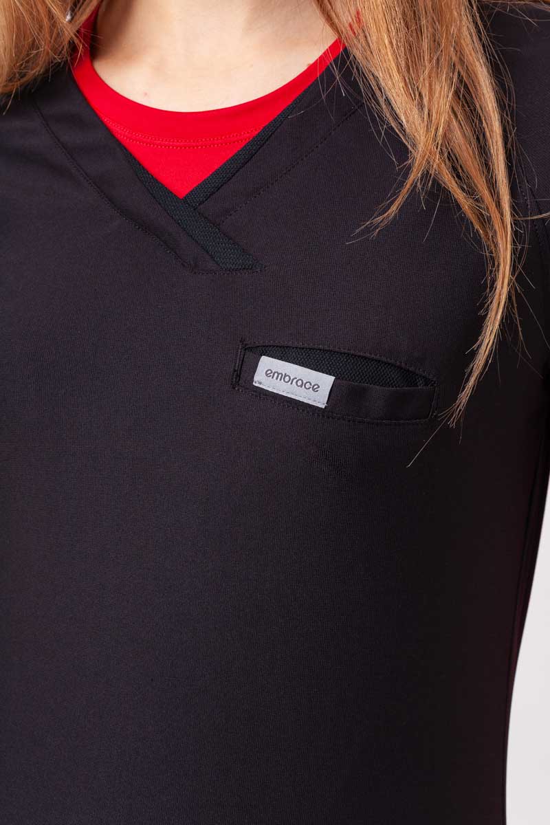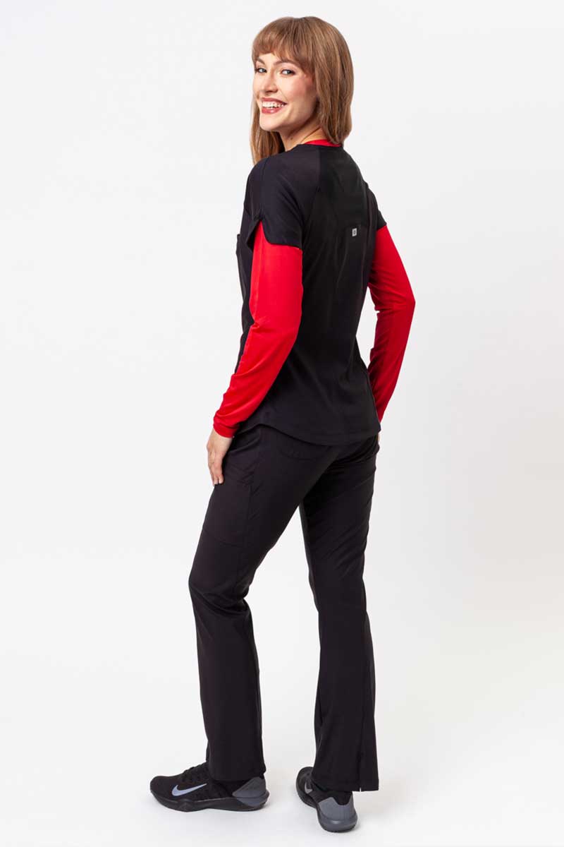 Zažijte plnou volnost pohybu a pohodlí, které s vámi udrží krok i v tom nejnáročnějším dni. Halena s originálním výstřihem do písmene „Y“ a raglánovými rukávy s rozparkem poskytuje lehkost a ventilaci, zatímco elastická tkanina odvádí vlhkost a nemačká se ani při intenzivní práci. Kalhoty s rozšířenou nohavicí a elastickým pasem s praktickou šňůrkou zaručují pohodlí po celý den a množství kapes vám umožní mít vše potřebné vždy po ruce bez omezení. Tvarující švy a decentní rozparek vzadu podtrhují sportovní charakter kompletu a dodávají ještě větší volnost pohybu. Celek se perfektně osvědčí v dynamickém pracovním prostředí, kde spojuje funkčnost, pohodlí a moderní vzhled v jednom profesionálním setu.