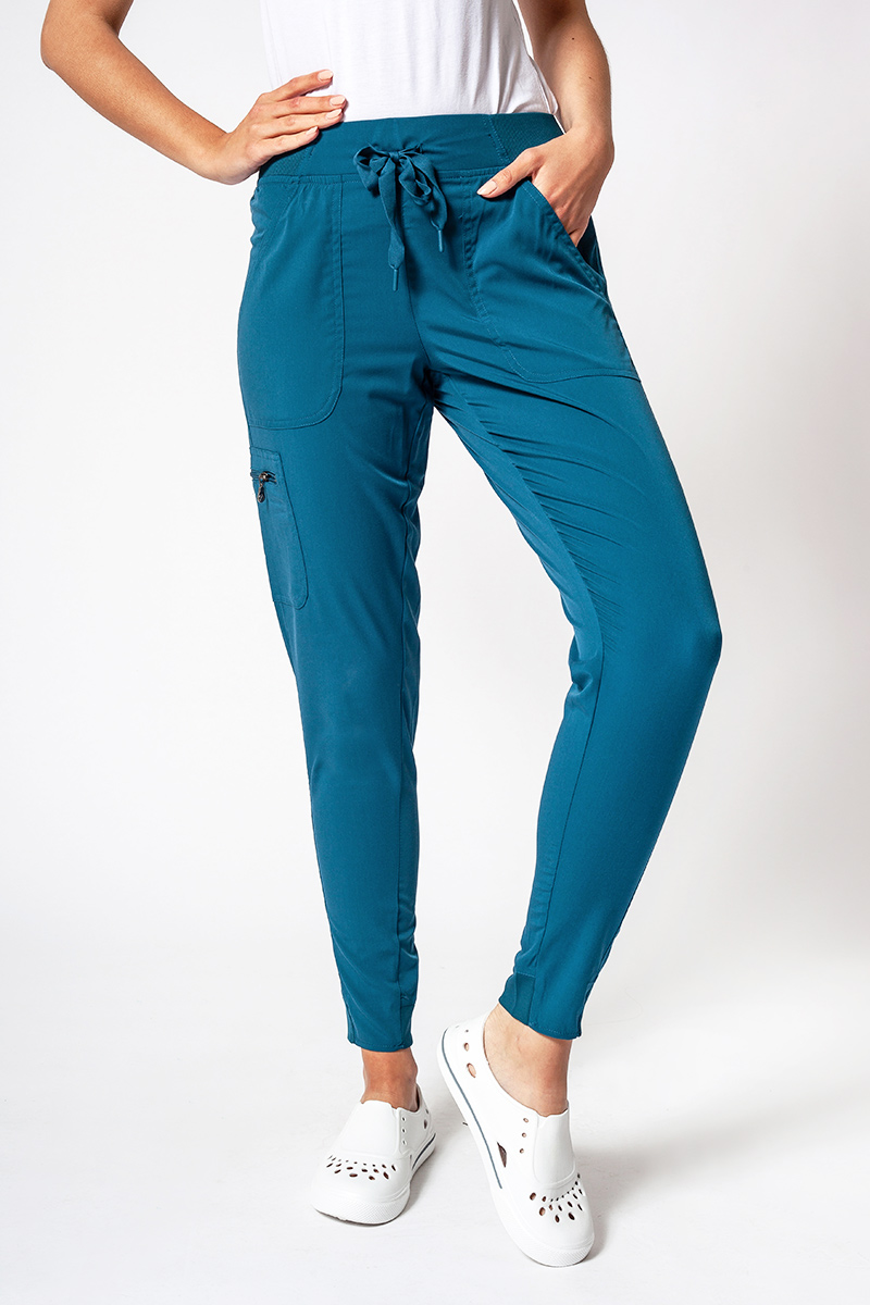 Jak začít svůj pracovní den ve skvělé náladě? Díky dokonalému oblečení;) V lékařské sadě Adar Uniforms pocítíte nejen plnou svobodu pohybu, ale také krejčovské řemeslné zpracování. Sada je vyrobena z pružné tkaniny odolné proti zmačkání s přídavkem hedvábí a spandexu. Nosí se perfektně! Halena s krátkými rukávy a diskrétními vtažkami pěkně zvýrazní vaše tvary a joggery prolomí elegantní charakter stylingu se sportovním akcentem. Z bohaté palety barev vyberte svou oblíbenou, abyste vyjádřili skvělou náladu :)