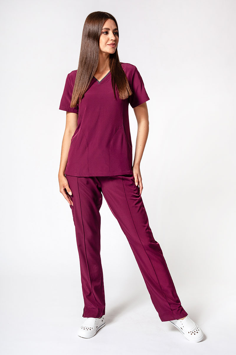 Uvidíte ji a řeknete si: "Tahle souprava musí být moje!" V případě soupravy Maevn Matrix se nejedná pouze o impuls, ale o skvělé rozhodnutí. Tkanina, ze které je vyroben, obsahuje spandex, takže je oděv pohodlný a dobře padne. Halena upoutá pozornost kontrastními vsadkami ve výstřihu a prostorné kapsy, včetně jedné na chytrý telefon, jsou vyztužené dvojitým prošitím. Kalhoty mají zajímavý střih s mírně zúženými nohavicemi a lemováním. Díky bočním rozparkům na lemu a elastickému pasu se snadno oblékají a pohodlně nosí po celý pracovní den.