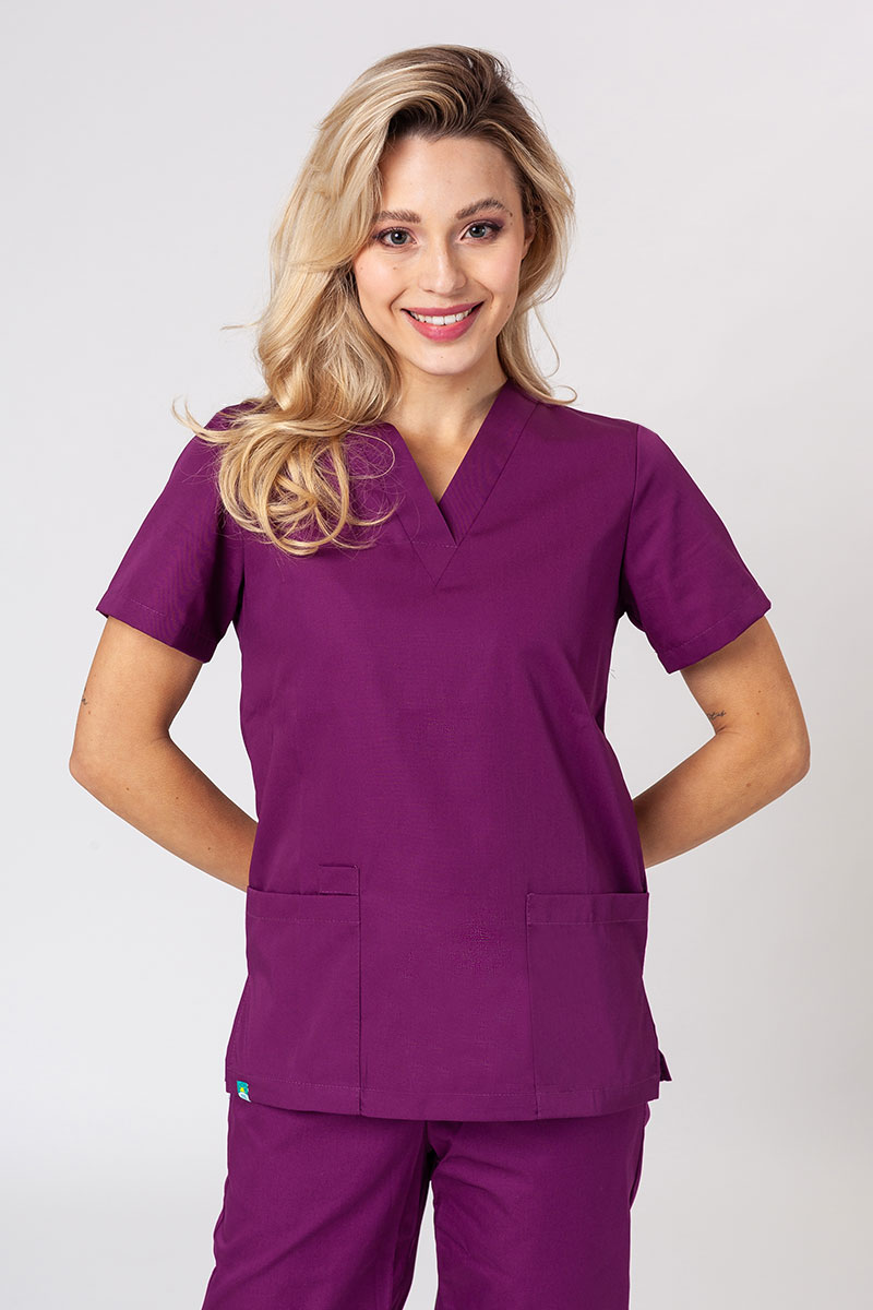 Cítíte se ve zdravotnickém oblečení žensky? Samozřejmě! Pokud hledáte profesionální, pohodlný a dokonale přizpůsobený pracovní oděv, pak jste ho našli! Soupravu tvoří extrémně pohodlné kalhoty s gumičkou na zavazování a halenu s praktickými kapsami. Pokud máte rádi charakteristické výrazné barvy, můžete si vybrat z mnoha originálních návrhů Sunrise Uniforms a změnit svůj obchodní vzhled.