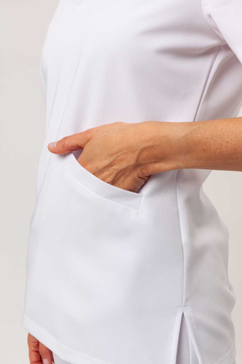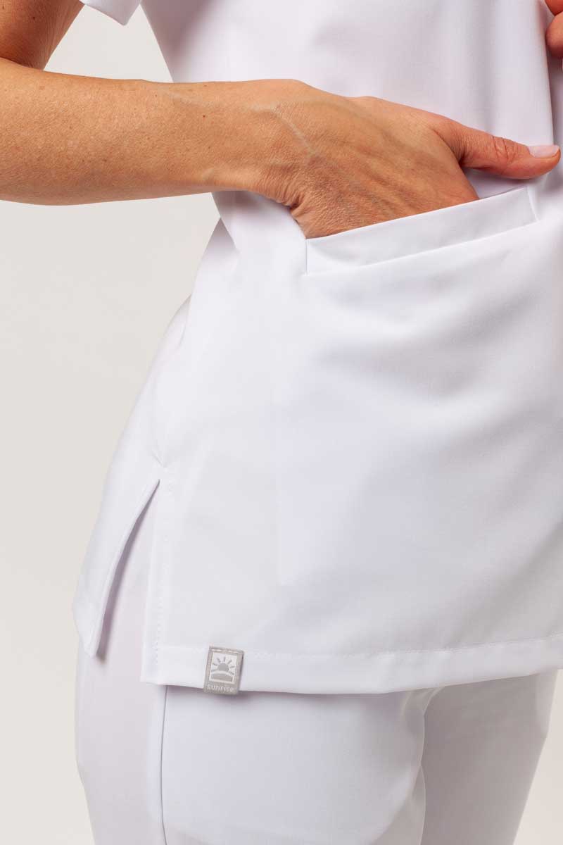 Nejrychlejší nápad na pracovní outfit je... souprava, kterou máte po ruce. Ale přece nechcete zůstat pouze u rychlosti. Záleží na dokonalém stylu, kvalitě zpracování a komfortu nošení. Tato všechna kritéria splňuje souprava zdravotnického oblečení z kolekce Sunrise Uniforms Premium, která spojuje moderní blůzu s nadčasovými kalhotami s rovnými nohavicemi, které se směrem dolů mírně zužují. Horní část s výstřihem do V, šikmými kapsami a zesílenými švy na klíčových místech dokonale ladí s dolní částí, vybavenou funkčními kapsami a širokou gumou v pase, s přídavným šňůrkou pro dokonalé přizpůsobení. Souprava je vyrobena z kvalitní, pokožce příjemné tkaniny s přídavkem elastanu, ve které vám bude pohodlně po celý den.