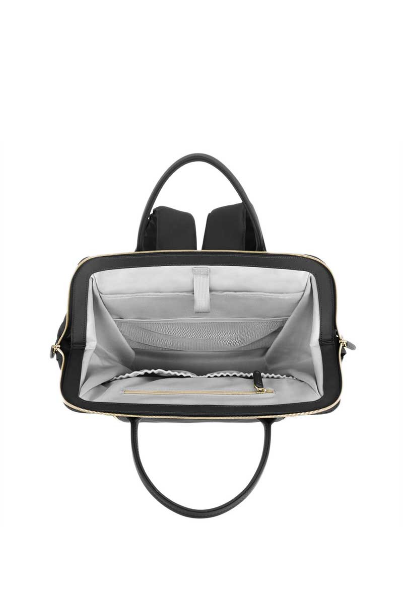 Taška ReadyGo se vyznačuje speciální vyztuženou konstrukcí, která umožňuje mimořádně široké otevírání hlavní kapsy. Nezavírá se nekontrolovaně. Můžete se v něm bez obav přehrabovat. Taška má pohodlná ucha pro nošení v ruce a 2 ramenní popruhy pro nošení jako batoh. Díky těmto řešením si můžete užívat pohodlí "hands free". Množství kapes, přihrádek a kapsiček činí z brašny mimořádně praktický a užitečný atribut pro každodenní pracovní život.
