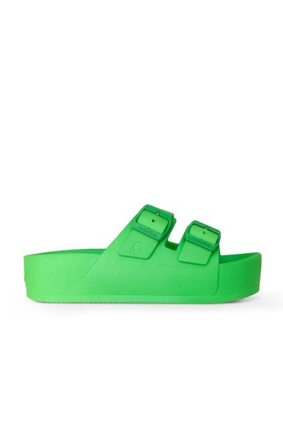 Žabky s vůní levandule? Značka Schu'zz vyvinula obuv, která potěší vůní provensálských levandulových polí a módními střihy. Model Jeannette Neon má dva pásky s přezkami, které pevně drží nohu na místě, a 4 cm dlouhou podrážku po celé délce, což dodává botám retro nádech, ale neubírá jim to na pohodlí. Vnitřní část je tvarovaná a celá je vyrobena z PVC plastu - příjemného na dotek, odolného a velmi snadno se čistí. Zářivé neonové barvy této řady vám umožní vytvořit úžasné styly, které okouzlí každého z vašich kolegů.