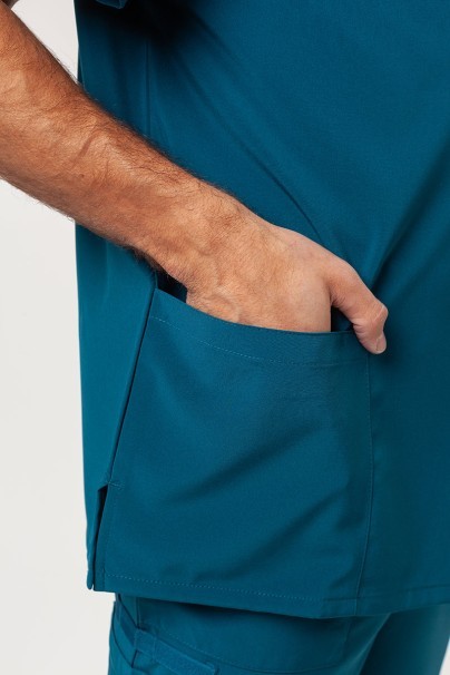 Zde je perfektní souprava do práce. Tato halena s krátkým rukávem a módním výstřihem do V se rychle stane nepostradatelným kouskem vašeho šatníku. Její uvolněný střih a boční rozparky vám zajistí pohodlí po celý den. Kalhoty s rovnými nohavicemi vám poskytnou volnost pohybu a klasické zapínání v pase doplněné zadním stahovacím páskem s nastavitelnou šňůrkou umožní dokonalé přizpůsobení. Halena i kalhoty jsou vyrobeny z extrémně pružné tkaniny, která je odolná a bezproblémová a okamžitě odvádí vlhkost. Tato souprava je ideální volbou pro každý pracovní den.