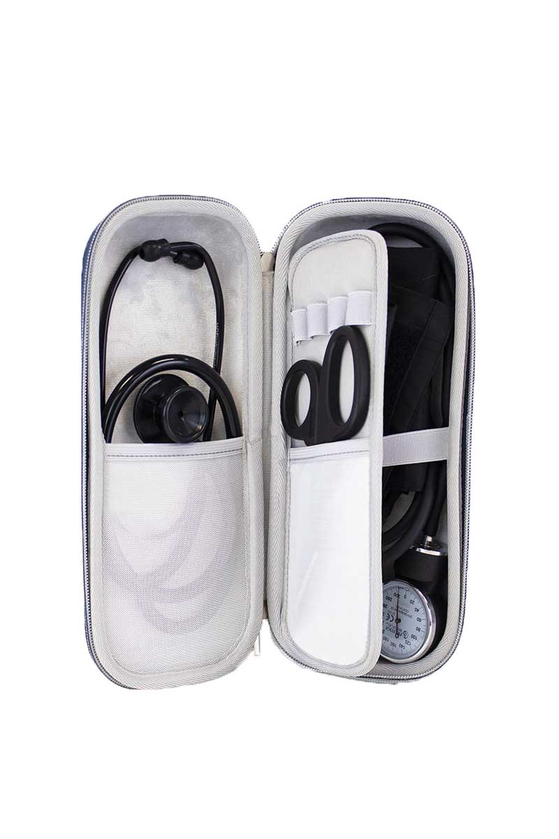 Může vám vaše lékařské příslušenství slíbit, že vás neopustí až do konce směny… ani na krok? Pouze v případě, že je nosíte v elegantním šikovném pouzdru/etui Maevn ReadyGO;) Klasický design výrobku, úhledné držadlo v podobě pásku, pokovovaný nylonový zip jsou přednostmi, které při používání oceníte. Navíc pečlivě zpracovaný vnitřek s měkkou podšívkou z umělého semiše, tři síťované kapsy, elastické rukojeti a přepážka - dokonale ochrání vaše pracovní pomůcky. Je těžké se s takovým pouzdrem loučit ;)
