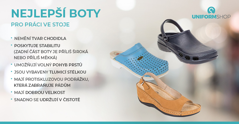 Pokud hledáte pohodlnou obuv pro práci ve stoje, pohodlné modely najdete na adrese: dámská lékařská obuv a pánská lékařská obuv.