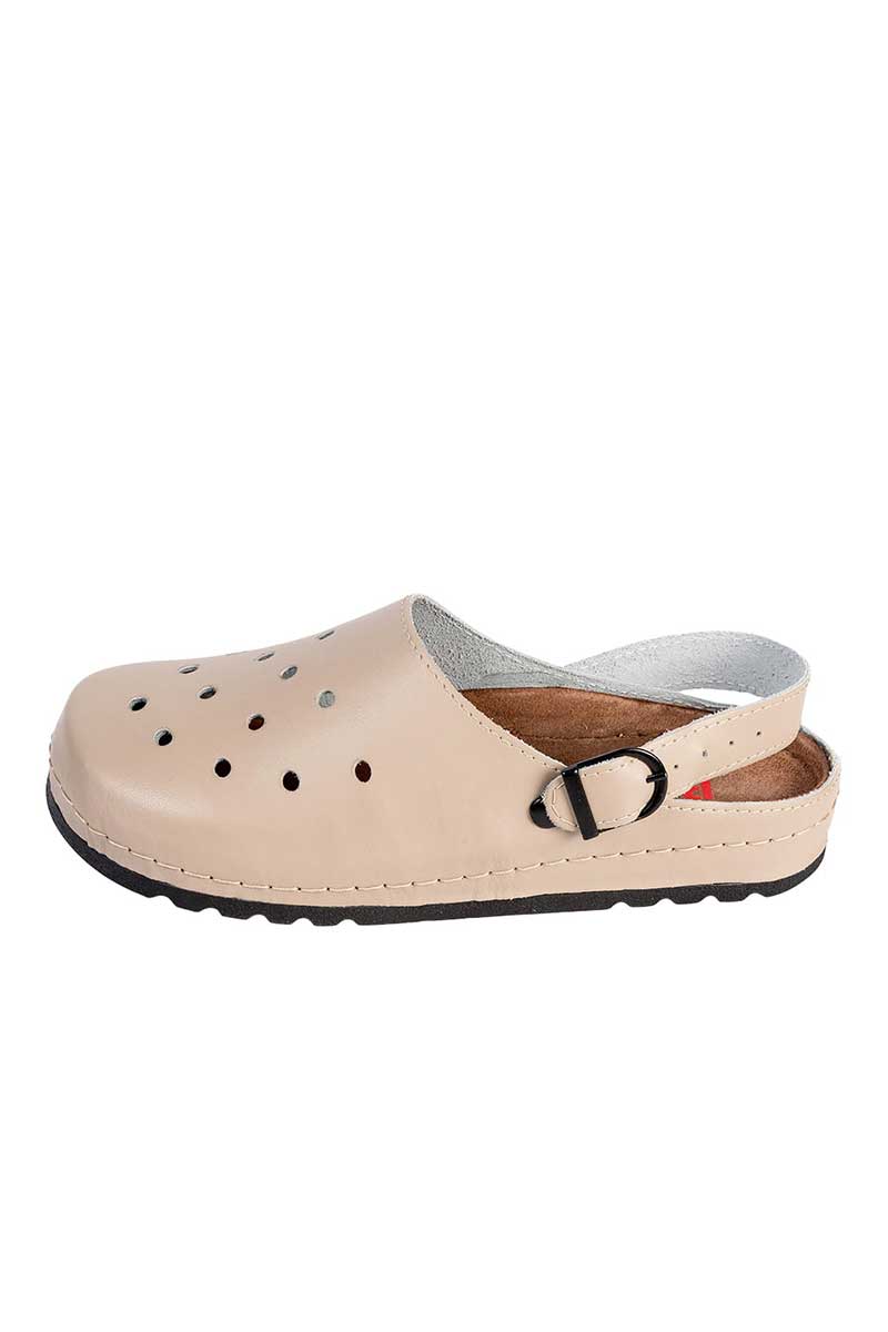 Pantofle navržené pro ty, kteří tráví dlouhé hodiny v pohybu a od obuvi očekávají víc než jen „je to pohodlné“. Kožený svršek umožňuje nohám dýchat, zajišťuje přirozený komfort a eliminuje problémy typické pro syntetické materiály. Měkká podrážka z pěny MEMORY jemně podpírá chodidlo přesně tam, kde je to potřeba – bez nepříjemného pocitu propadání. Tvarovaná stélka a širší špička pomáhají udržet správné postavení chodidel a snižují riziko obtíží, které dokážou výrazně znepříjemnit pracovní den. Protiskluzová gumová podešev dodává jistotu kroku i na kluzkém povrchu a snadná údržba zajišťuje, že pantofle si dlouhodobě zachovávají svěží a profesionální vzhled. Jde o model, který se o pohodlí stará nenápadně – bez kompromisů a bez zbytečné pozornosti.