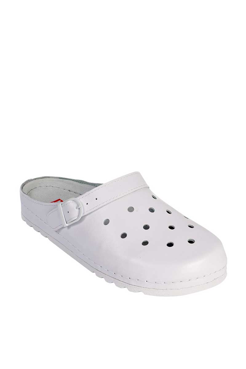 Pantofle navržené pro ty, kteří tráví dlouhé hodiny v pohybu a od obuvi očekávají víc než jen „je to pohodlné“. Kožený svršek umožňuje nohám dýchat, zajišťuje přirozený komfort a eliminuje problémy typické pro syntetické materiály. Měkká podrážka z pěny MEMORY jemně podpírá chodidlo přesně tam, kde je to potřeba – bez nepříjemného pocitu propadání. Tvarovaná stélka a širší špička pomáhají udržet správné postavení chodidel a snižují riziko obtíží, které dokážou výrazně znepříjemnit pracovní den. Protiskluzová gumová podešev dodává jistotu kroku i na kluzkém povrchu a snadná údržba zajišťuje, že pantofle si dlouhodobě zachovávají svěží a profesionální vzhled. Jde o model, který se o pohodlí stará nenápadně – bez kompromisů a bez zbytečné pozornosti.